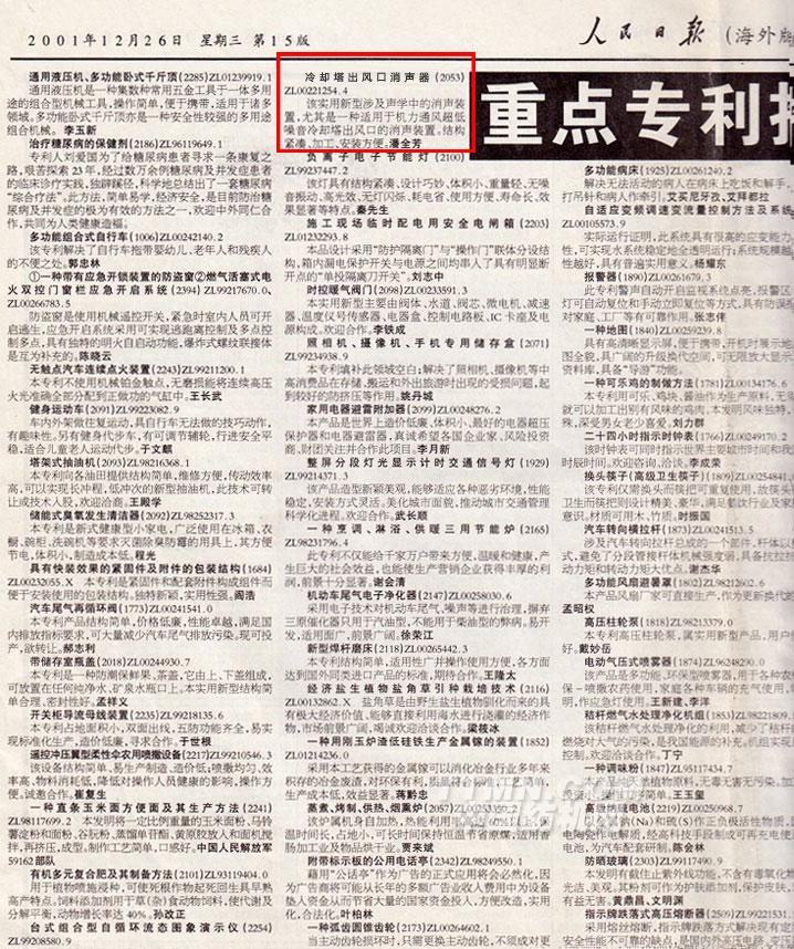 人民日報重點專利推薦-《冷卻塔出風口消聲器》