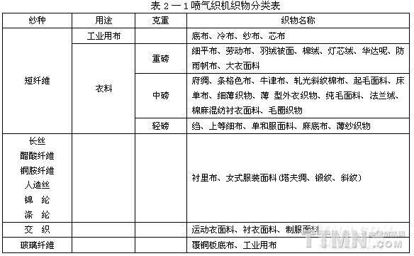 噴氣織機織造范圍見圖2—1。噴氣織機織物分類見表2—1。