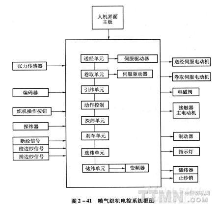 電控系統中的主要控制單元:主控、顯示、送經、卷取、引緯、儲緯、選緯、探緯、動作控制、制動。有些單元可以合并在一起。