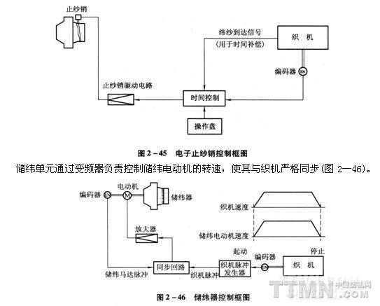 儲緯單元通過變頻器負責控制儲緯電動機的轉速,使其與織機嚴格同步(圖2—46)。