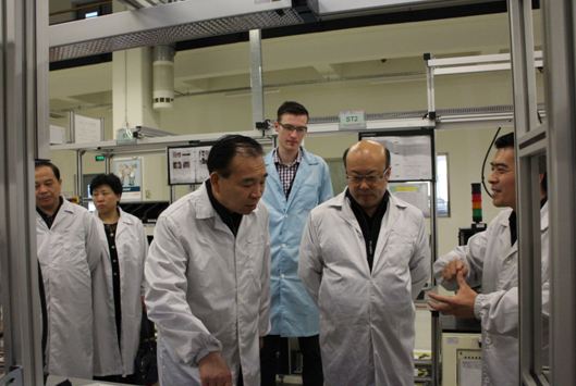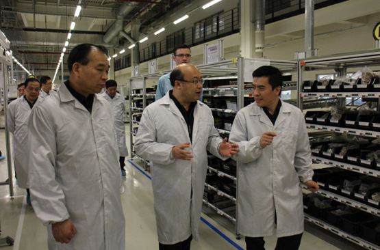 我公司生產部總監劉瑞俊先生,生產經理張一馳先生帶領大家參觀了工廠車間。劉瑞俊先生首先向大家講解了公司的歷史,發展,工廠的布局,生產的產品,市場銷售等情況。然后帶領大家依次走過各條生產線,參觀設備以及了解工人正常操作的場景。不時向陪同參觀的經開區段永和巡視員以及劉瑞俊先生咨詢交流。王市長一行對車間工人的專業規范操作表示贊許,同時對我公司的發展給予充分的肯定。其他隨行領導也饒有興趣的參觀并不時向相關人員詢問公司的發展背景,產品生產,產品功能,產品組件研發,所用行業等等。在得到詳細的答復后,都點頭肯定。