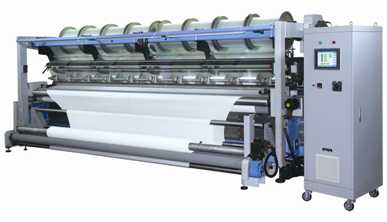 E2518/2T-170型經編機采用了短動程曲軸連桿技術,使經編機的運轉速度可以達到3000轉/分鐘;編花裝置采用高速曲線的盤型凸輪,主軸與編花輪的傳動比為24:1,凸輪轉一圈可編織24個橫列;采用EBC電子送經、電子牽拉、和摩擦式恒速電子卷取機構,保證了織物的布面質量;采用碳纖針床,對溫度的適應性增加,可以適應正負7度的溫度變化,有效降低用戶的使用成本,是經編企業生產彈力織物的最佳設備。