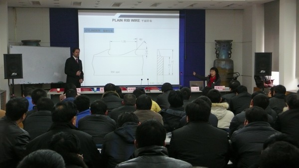 2011年2月10日,春節(jié)后上班的第二天,在歡迎新春到來的陣陣鞭炮聲中,棉紡事業(yè)部舉辦了2011年的第一次技術(shù)專題培訓(xùn),本次培訓(xùn)特邀請了德國特呂茨勒針布亞太區(qū)技術(shù)總監(jiān)Mr.Erwin Berner先生、西班牙布魯哈針布中國總代表大衛(wèi)•狐貍先生、技術(shù)總監(jiān)柯瑞思先生、東華大學(xué)程隆棣教授、遼東學(xué)院孫鵬子教授前來授課,棉紡開發(fā)部郭東亮、張小平、徐國勝、邢懷祥、湯水利、白金報等多位同志也就當(dāng)前棉紡設(shè)計及工藝方面同參培人員進(jìn)行了全面知識培訓(xùn)與交流。棉紡事業(yè)部全體設(shè)計、銷售、售后、配件業(yè)務(wù)人員,裝二分廠業(yè)務(wù)骨干、質(zhì)量部棉紡檢驗(yàn)及無紡布工程部相關(guān)人員接受了培訓(xùn)。股份公司劉延武總工程師應(yīng)邀,李泉副總經(jīng)理、棉紡事業(yè)部趙青分別主持兩天的培訓(xùn)會,并對各位講師的精彩演講作出了高度評價。