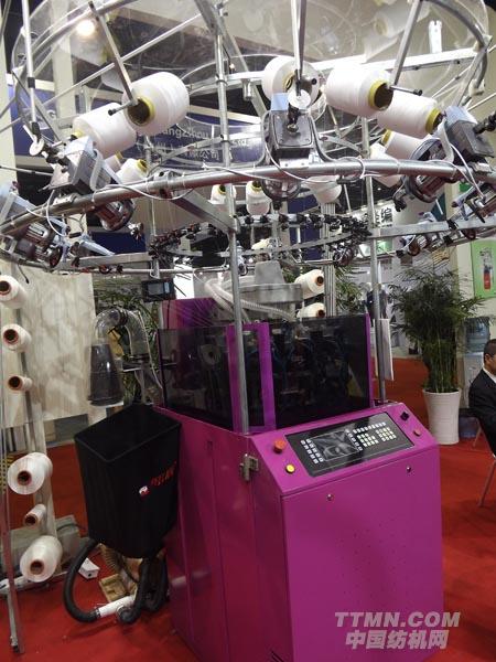 陳:這次我們展會(huì)帶來(lái)了幾個(gè)比較特殊的產(chǎn)品,一個(gè)是移圈,分好幾種,84針,120針,96針的。這次最新推出一個(gè)4寸120針的移圈,它做褲襪橫拉可以達(dá)到45以上,這個(gè)不但滿足日韓市場(chǎng),在歐美市場(chǎng)和俄羅斯市場(chǎng)也是比較風(fēng)行的。然后在夢(mèng)幻任意拉毛這個(gè)機(jī)器,我們推出了夢(mèng)幻的 ,雙路頸線任意拉毛和單路頸線任意拉毛。這兩款機(jī)型,目前這兩款機(jī)型在國(guó)內(nèi)來(lái)說(shuō),在行業(yè)里來(lái)說(shuō)也是比較超前的,另外一個(gè)就是無(wú)縫內(nèi)衣機(jī),無(wú)縫內(nèi)衣機(jī)我們推出了一個(gè)有頭機(jī)12路頸線,目前是第一家首推出來(lái)的,它的產(chǎn)量在市場(chǎng)原有8輪頸線的基礎(chǔ)上至少提高了30%的產(chǎn)量,大概目前是這樣子。
