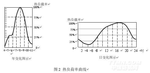 在中央空調系統(tǒng)設計時,冷凍泵、冷卻泵的電機容量是根據(jù)建筑物的最大設計熱負荷選定的,都留有一定設計余量。由于四季氣候及晝夜溫差變化,中央空調工作時的熱負荷總是不斷變化。下圖2為一民用建筑物的平均熱負荷情況: