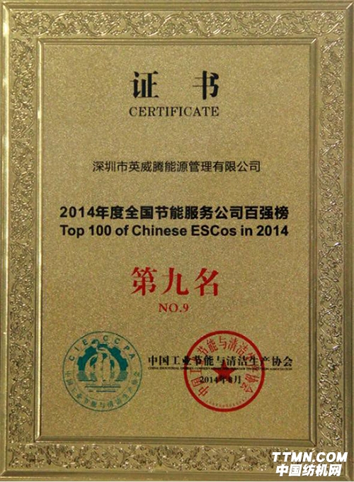 在當天下午舉辦的發布會上,深圳市英威騰能源管理有限公司以306,339噸標準煤的節能量,位居全國百強榜第九位,成功入圍"全國十強"。這也是英威騰能源自2013年度參加評選以來,斬獲的又一個"全國十強"榮譽。在隨后公布的"深圳地區節能服務公司十強榜"中,英威騰能源更以較大的優勢榮居榜首。