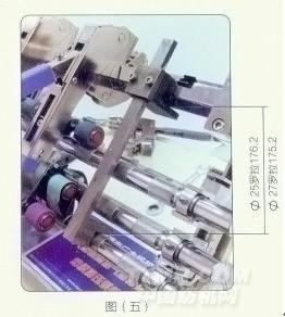 支承管座固定在羅拉座上之前,要用定距規調整支撐管座的安裝位置。支承管座的中心到前羅拉中心距離為210毫米,支承管一旦固定到正確位置后,就可以拆去定距規了。見圖(五)