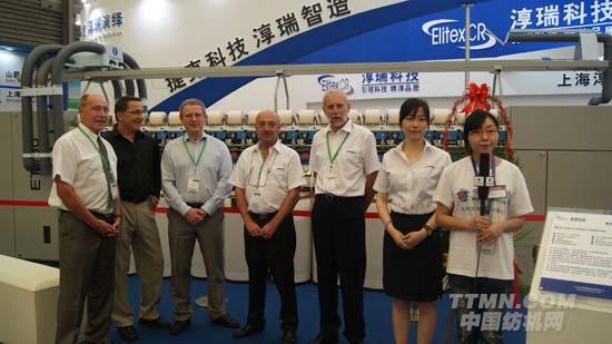 王董:我們公司起始于2005年,引進了捷克的轉杯紡技術,在消化吸收的基礎上,我們陸續推出了將近6款產品,今年是第八個年頭。淳瑞主張科技創新,主張打造良性的團隊建設。今年預計我們會突破2.5億人民幣銷售。這次展會我們帶來了兩款產品,最新的一款是ET480,它是世界范圍內為數不多的能紡4車子純棉、4車子粘膠的一款優秀產品。它的錠速能達到420頭,且是目前世界范圍以內最省電的一款轉杯紡紗機。這款設備的最大的優勢在于紗線品質的優秀,能耗低以及高支紗的受紡。