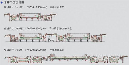 針織物平幅連續化漂白前處理聯合機常用工藝流程圖: