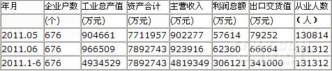 據國家統計局公布的數據,2011年1-6月份我國規模以上紡織機械行業企業數量為676家,該行業實現工業總產值493.45億元,同比增加31.32%;資產合計789.27億元,同比增加27.84%;實現主營收入481.93億元,同比增加30.77%;完成利潤總額30.61億元,比上年同期增加7.91億元,同比增加34.82%;完成出口交貨值34.10億元,同比增加23.86%;行業整體從業人數13.13萬人,同比增加8.01%。由此可見,紡織機械行業總量增長勢頭良好,并為我國經濟、財政、出口和就業作出了重大的貢獻。