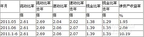 從短期償債和變現能力的變化看,紡織機械行業流動比率(流動資產/流動負債)2011年1-6月份為2.61倍,而上年同期為2.69倍,流動比率較高,表明企業短期償債能力較強;