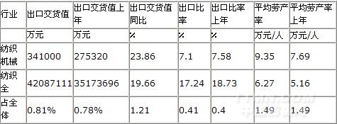 從行業產品出口交貨值和勞動生產率水平看,2011年1-6月份紡織機械行業產品出口交貨值為34.10億元,占紡織全行業的0.81%;出口交貨值比上年同期增加23.86%;該行業產品出口比率(出口交貨值/工業銷售產值)為7.10%,而上年同期為7.58%,表明該行業產品出口狀況較好;從勞動生產率的水平看,2011年1-6月份紡織機械行業平均勞產率(工業增加值/從業人數)為9.35萬元/人,而上年同期為7.69萬元/人,表明該行業勞動生產率的實際水平較為理想。