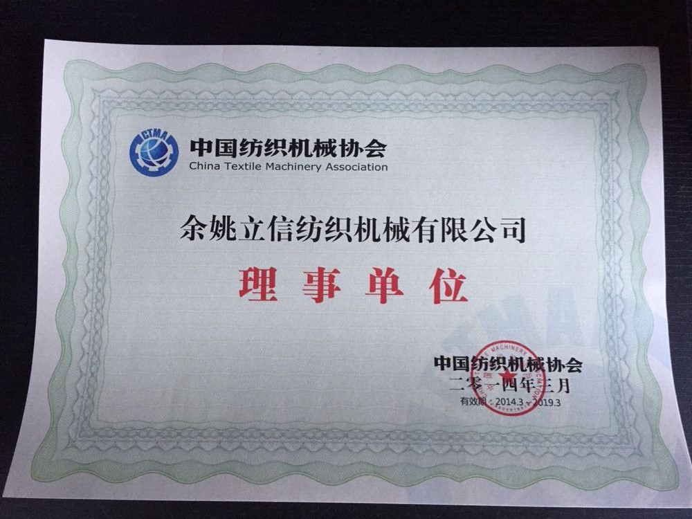 余姚立信紡織機械有限公司 任 中國紡織機械協會 理事單位 (2010.3-2019.3)