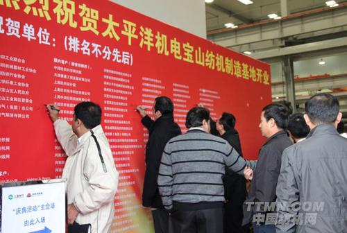 TTMN訊 2012年11月30日上午,太平洋機電寶山紡機制造基地開業慶典在上海寶山區隆重舉行,受到各方面領導及代表的祝賀,機構領帶、行業媒體及國內外近150多家用戶代表,以及其他領導和嘉賓共200余人出席。