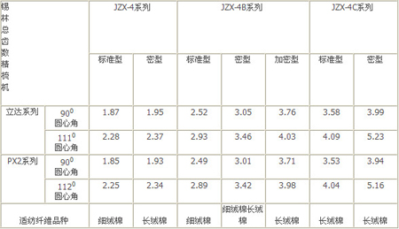 表1:精梳機配套錫林的總齒數(shù) 單位:萬齒
