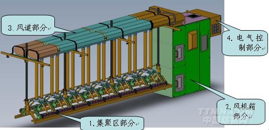 風(fēng)道的主要作用是為負(fù)壓集聚提供氣流的通道,同和公司有適用于長車的大風(fēng)道和上置式雙風(fēng)道,適用于短車的小風(fēng)道和上置式單風(fēng)道。
