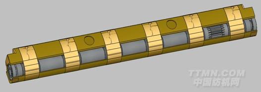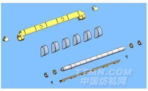 ②異形管與小羅拉一體式組裝(專利號:2011 1 000 3267.2 ),軸承擋位置加工精度和裝配精度均高于一代,剛性好,性能穩(wěn)定,紗線一致性好;