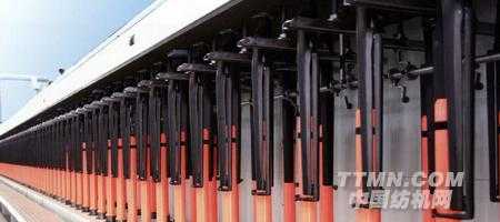 ④ 通過該機的空——滿管交換部件實現了粗紗機上的滿筒粗紗和粗細聯輸送系統上的空紗管進行交換。展機為 120 錠,與細紗機進行了粗細聯,并以 900r/min 錠速進行了紡紗及自動集體落紗、粗紗滿空管自動輸送的展示。