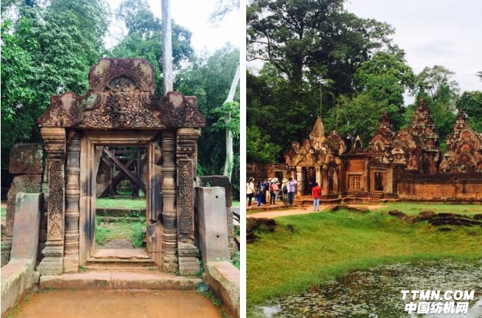 看到女王宮的浮雕,很難想象這么精細(xì)的雕刻居然是在石頭上作業(yè),雕工極其細(xì)膩,細(xì)節(jié)飽滿,紋理紛繁復(fù)雜。更難得的是,女王宮浮雕整體保存得完好,或許是隱藏在叢林深閨中久久未得人識(shí),它比起吳哥其它寺廟風(fēng)化斑駁的浮雕,這里就像新的一樣仍舊栩栩如生。