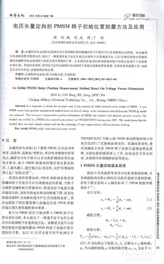 電壓矢量定向PMSM轉(zhuǎn)子初始位置測量方法及應(yīng)用