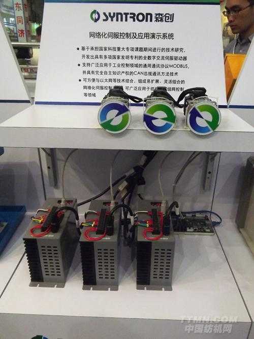 張總:好,首先看到的這個是我們自主創新的一個數字卷繞排線專用系統,這是一個演示系統,它的整個控制功能都能跟瑞士的CCM、歐瑞康這類公司進行競爭的。它可以應用在很多設備中,比如說精密卷繞的絡絲機、松式絡筒機、并紗機和包覆絲機等等。這些紡紗的卷繞設備,包括在廚具紡紗還有在化纖的設備上都可以實現高柔性化的數碼卷繞的功能。這里還有我們做的一個演示系統,和一個加彈機的橫動演示單元。所謂加彈機的橫動有很多,原來是采用一些機械的結構來完成的,現在只要通過這套全數字的系統來完成就可以了,大大提高了它的速度,同時它的維護成本也比較低,這樣一來,加彈機的客戶把這套系統應用上以后,就能大大提高設備的生產效率。