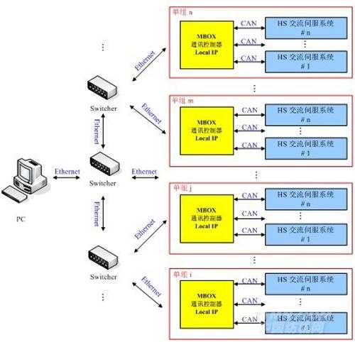 HS伺服CAN總線組網與MBOX通訊控制板卡構成的以太網控制節點