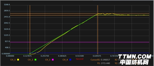 圖中黃色曲線為電機(jī)實(shí)際反饋速度,綠色曲線為電機(jī)指令速度