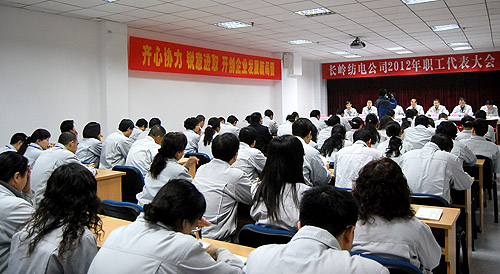 2012年1月18日,紡電公司“2012年員工代表大會”在公司第二會議室召開,82名員工代表和23名列席代表參加了會議。長嶺電氣公司董事長、黨委書記、紡電公司董事長張寶會參加會議,并作重要講話。