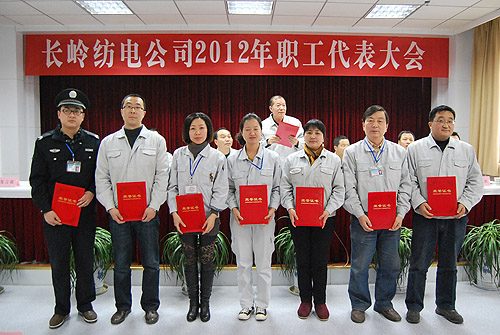 會上,表彰了2011年度先進集體、先進個人、質量工作先進集體、先進個人,受到表彰的先進集體代表設備部動力室王俊、先進工作者代表王華分別做發言,表示要發揚紡電人頑強拼搏、勇于開拓的優良傳統,積極進取,奮發有為,為全面完成2012年各項生產經營目標而努力工作。
