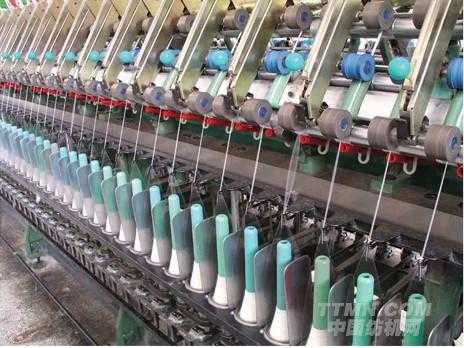 在2012年國際紡機(jī)展上,無錫第七紡織機(jī)械有限公司QFB559A型絨線細(xì)紗機(jī)。
