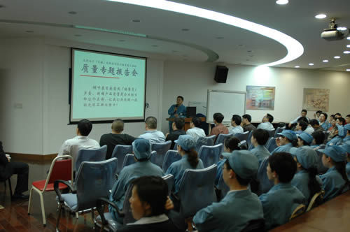 06年4月30日下午,光洋電子(無錫)有限公司的全體員工集合到公司多媒體教室,開展公司第六屆質量月的重要活動之一—召開產品質量專題報告會。在二個小時的質量專題報告會上,全體員工傾聽了來自公司第一線的銷售員們聲音,講述了產品質量在銷售過程中的重要性,使全體員工從心靈深處受到很大的觸動,明確了產品質量是企業的生命、是企業開拓市場的有力武器這個真諦。