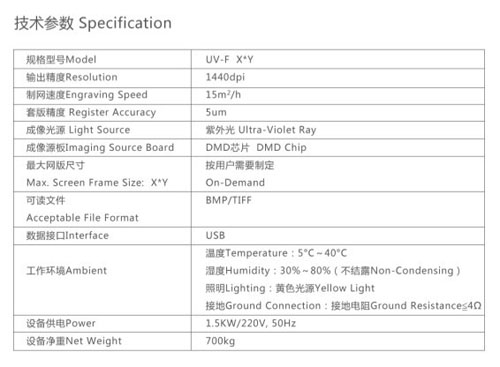 東城紫外平網直接制網機技術參數: