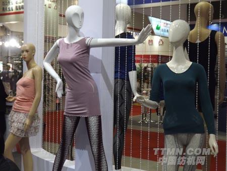 劉經理:本次展會主要帶來了無縫內衣賈卡經編機。主要是棉褲襪和無縫內衣為主的,在我們去年推出的是24針,是有設備在現場開的。今年是沒有設備,但是我們按照現在的發展來講,應該推出的是28針的設備,就是28針的機械。對于24針的產品,表面的感覺會更加細膩,對于國內的女性來講,更加適應一點,因為24針的網孔稍微偏大一點。
