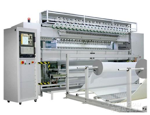 10. 采用世界先進的絎縫機頭, 下針排X 向可移動52.2mm, 配合上針排完成各種花型的絎縫, 無需改變針位, 從而大大提高生產(chǎn)效率.
