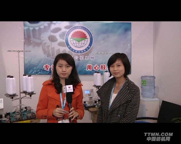 記者:中國紡機網的觀眾朋友大家好,我現在在2011義烏國際針織機械展的現場,今天非常高興能邀請到輝騰針織機械的唐小姐接受我采訪。你好,唐小姐。
