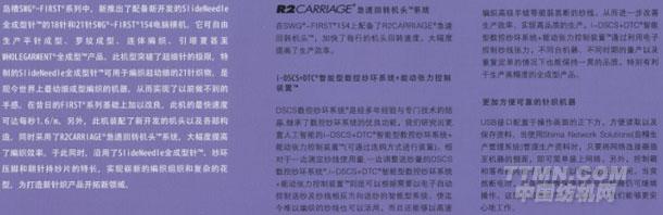 島精SWG-FIRST系列中,新推出了配備新開發(fā)的SlideNeedle全成型針的18針和21針WG-FIRST154電腦橫機。配備R2CARRIAGE急速回轉機頭系統(tǒng),I-DSCS+DTC智能型數(shù)控紗環(huán)系統(tǒng)+能動張力控制裝置,更加方便可靠的針織機器。