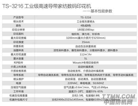 TS3216工業級高速導帶家紡數碼印花機的基本性能參數
