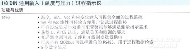 1490型1/8DIN通用輸入溫度與壓力過程指示儀功能與優(yōu)勢