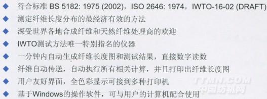WIRA纖維長度測試儀,廣泛應用于世界各地的紡織測試實驗室,以及測定纖維長度的平均值及其分布,適合于各種天然纖維和合成纖維。纖維試樣制取之后即可自動進行測試操作。纖維長度測試儀FDM:001運送試樣通過測量頭,同時傳輸數據至計算機,并在計算機上進行所有必要的運算。纖維長度的平均值、變異系數和纖維圖即可打印出來,測量數據和所有相關信息,可以儲存在磁盤上以備進行進一步分析。