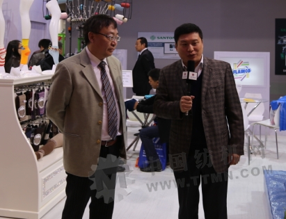 符總:您好,我是中加貿易的符寧,上海中加貿易有限公司作為國內代理歐洲和日本紡機的代理商里面我們經營的時間是比較久的,我們從1995年開始在國內進行紡機的代理業務,目前總部是在上海浦東.我們的業務范圍以經營意大利的染廠設備,襪機織造設備,以及日本春田自動絡筒機為主.意大利品牌包括了拉法,拉瓦,勞立絲比例里,FLAINOX,MCS等比較著名的一線的印染設備制造商.此次展會我們展示了兩個公司的機型,一種是意大利高樂斯特殊、時尚的襪機,另外一種是意大利FLAINOX公司專門用于無縫內衣和絲襪的染色機.