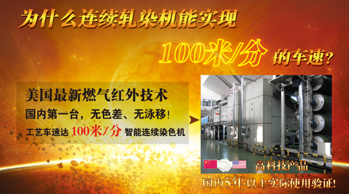 3)該產(chǎn)品極高的烘干效率,其應(yīng)用于染色打底機(jī)后不可用原配置的633預(yù)烘箱,從而徹底消除做高支高密產(chǎn)品時(shí)633造成的縐條、色差等質(zhì)量問題,還可消除換品種、換色位時(shí)需要大量的清潔工作燈麻煩,同時(shí)減少占用廠房空間。