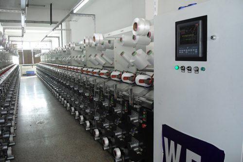 包紗機用來生產氨綸包覆紗、橡筋包覆紗;空包機用來生產空氣包覆紗,線速度800米/分鐘,單錠單控;精密倒筒機高速恒張力倒筒包覆紗。