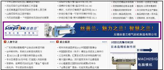 (2)通欄廣告絲普蘭在中國紡機網新聞中心980*90像素的通欄廣告http://www.wxfoundry.com/news/index