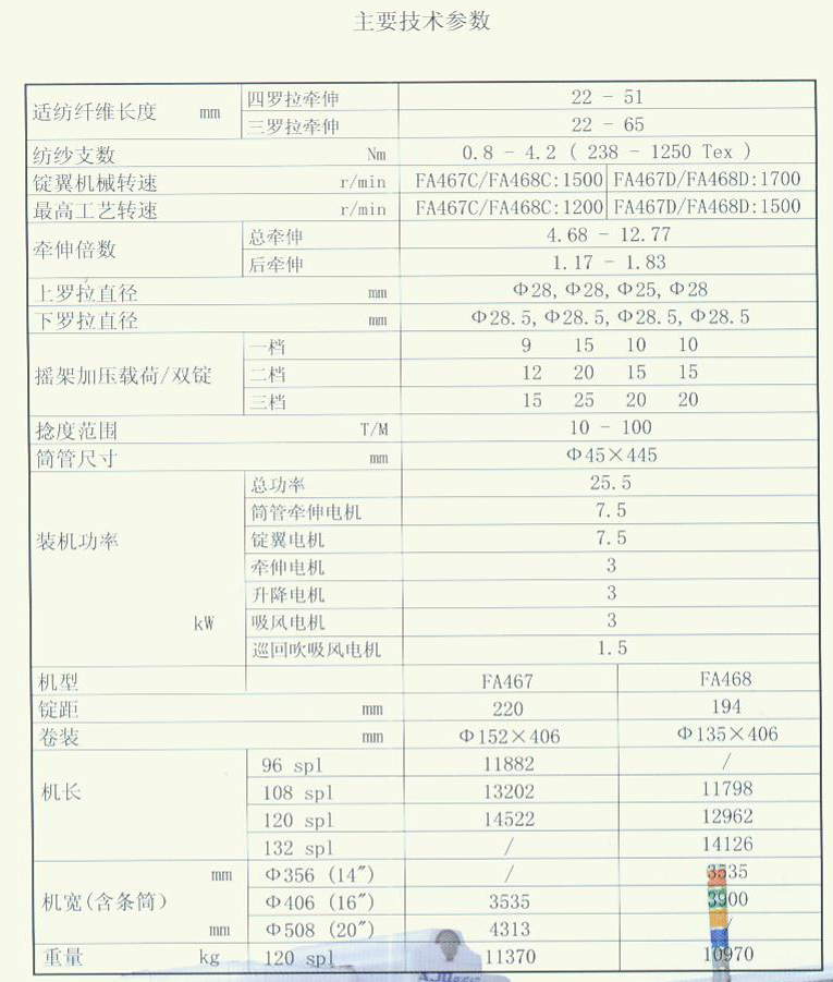 FA467C FA468C型懸錠粗紗機是采用先進的PLC及計算機控制開發的高速懸錠粗紗機,是在FA425的基礎上對機械結構進行簡化,取消了差速機構,采用變頻系統替換傳統的傳動機構,取消了除牽伸以外的配換齒輪,是目前國內最先進的機電一體化四電高速懸錠粗紗機之一。