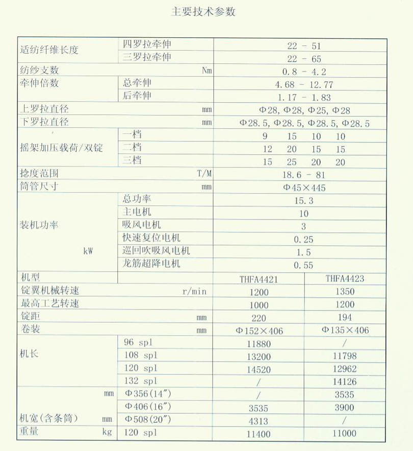 THFA4421/4423懸錠粗紗機是太行紡機在FA421A.FA423A基礎上研制的改進型粗紗機。