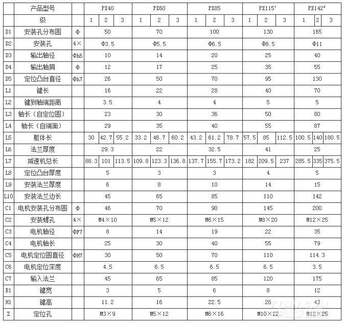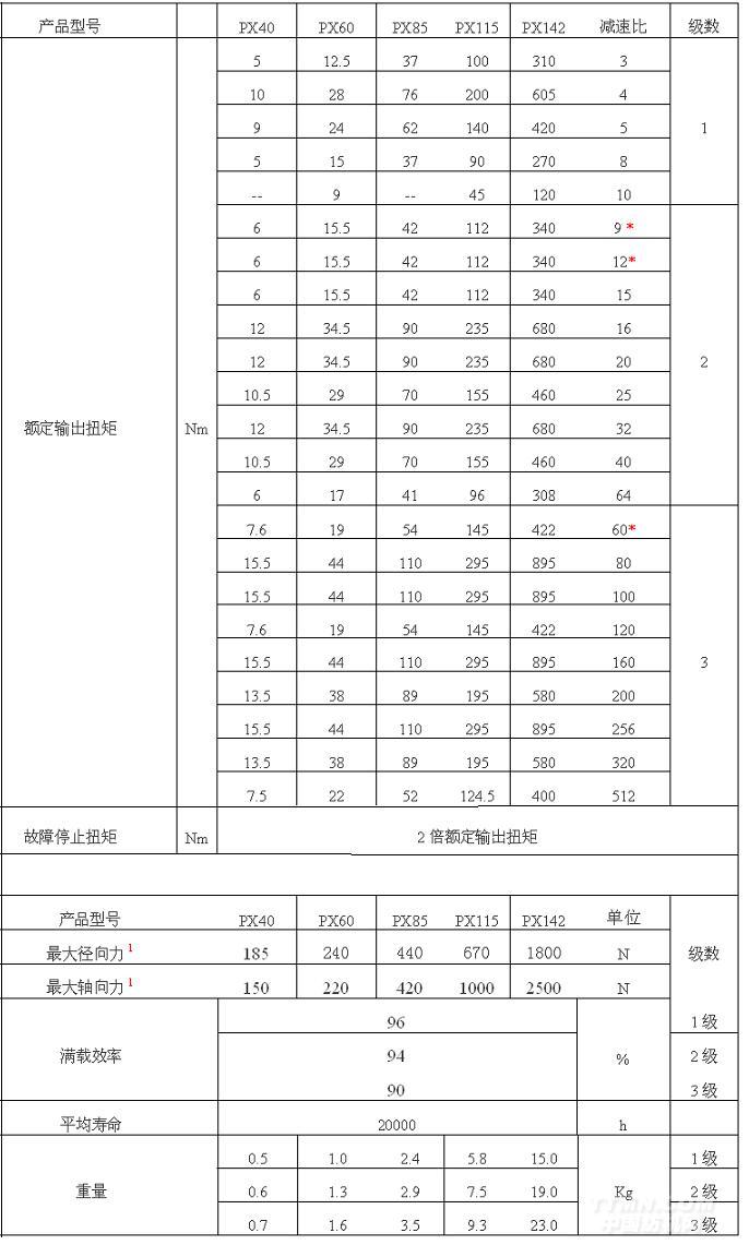 PX行星減速機技術參數