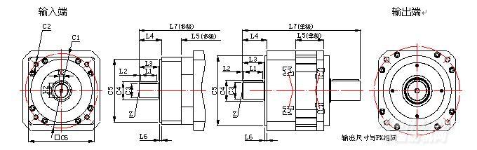 特點: 雙軸、輸入輸出均為軸連接,減速機為方型,法蘭連接,