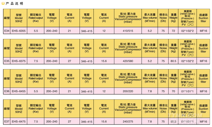 產品型號: EHS6355/6375額定功率:null電壓:null風量:null風壓:null轉速/極數:null安裝方式:null