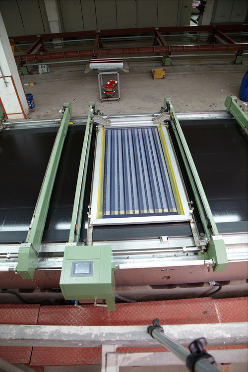 刮刀壓力調(diào)整可在相應(yīng)的控制面板上依壓力指標(biāo)刻度操作。針對(duì)寬幅大花位的印花,為防止升版時(shí)造成織物脫離臺(tái)面,可設(shè)定網(wǎng)版兩端的不同延時(shí)升降時(shí)間。整機(jī)外表由不銹鋼版保護(hù),可防印花漿料化學(xué)腐蝕,并易于清洗和維修。