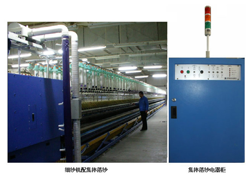 4、細(xì)紗機(jī)上配備集體落紗,整個落紗過程共需3分鐘,此過程無需任何人員操作,自動完成落紗并在落紗完成后自動啟動細(xì)紗機(jī)。顯著提高了勞動生產(chǎn)率,極大地減輕了工人的勞動強(qiáng)度。